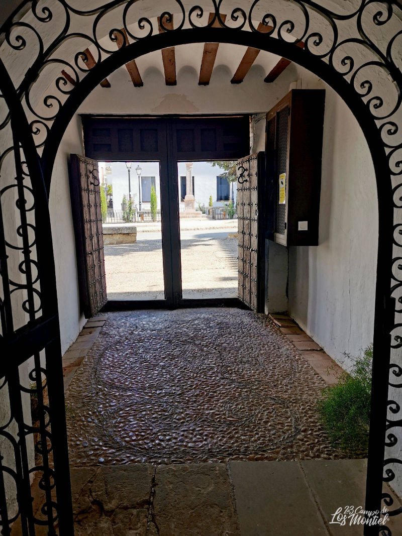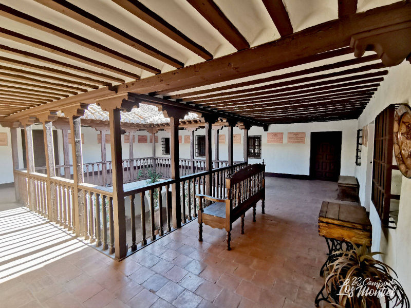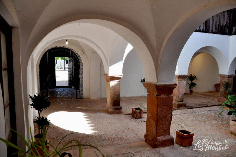 El patio es de reducidas dimensiones y excepcional dentro de la proyectiva de estos tipos de espacios dentro del conjunto de Villanueva de los Infantes. Los pórticos se conforman sobre 8 pilares cuadrados (3 en cada lateral) y arcos de medio punto, cubriéndose con bóvedas de arista. En el piso alto se vuelve al tradicional diseño de galerías sobre pies derechos y zapatas con balaustres limitando el espacio.