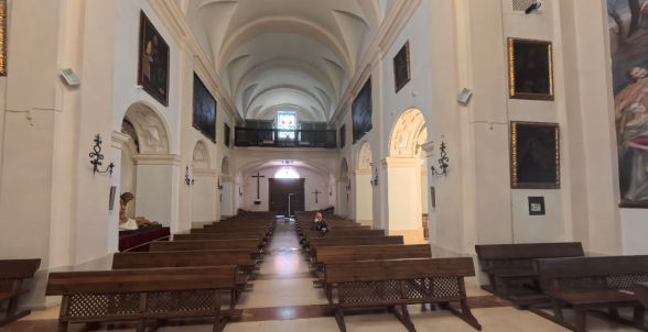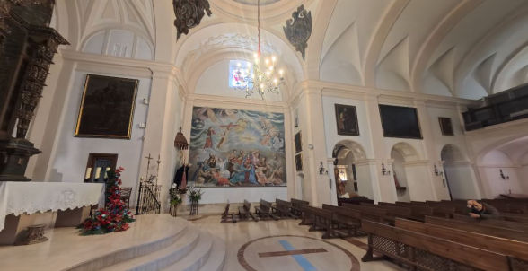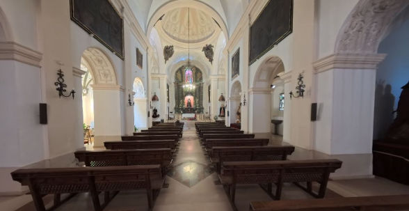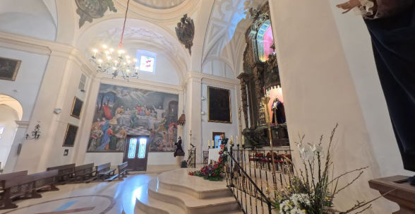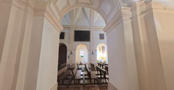 En la fachada destaca el equilibrio de volúmenes y en el interior conserva bellos retablos, destacando El Eucarístico, típico de la Contrarreforma.