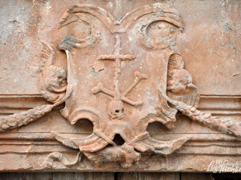 Sólo se conserva la portada adintelada con escudo del Santo Oficio; la cruz, la calavera y las tibias cruzadas.
