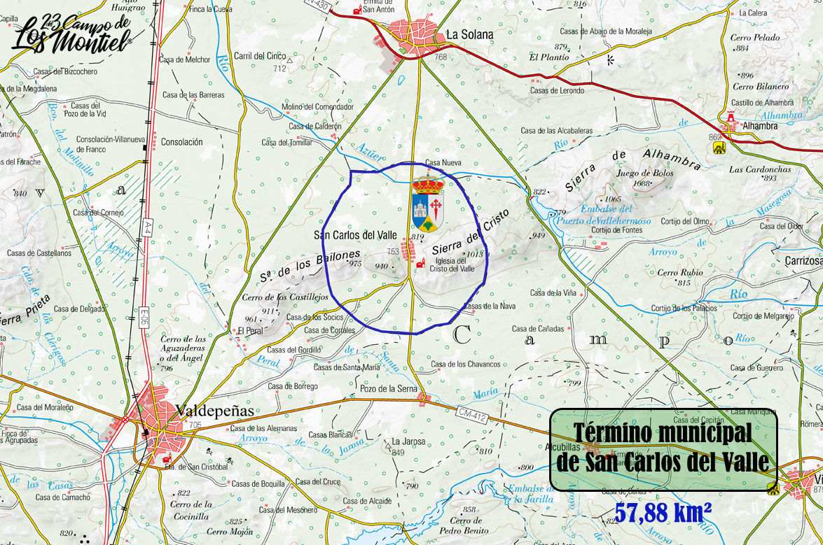 San Carlos del Valle es un municipio que se localiza en la zona este de la provincia de Ciudad Real. El término municipal, con una superficie de 57,88 km², es casi redondo y gira en torno al eje de la iglesia. El pueblo está situado en un valle, rodeado de montes y cerros que pertenecen a la Sierra del Cristo y a la Sierra de Alhambra, cuyas cimas tienen una altura aproximada de 1000 metros sobre el nivel del mar. Este pueblo nace como consecuencia del Plan de Colonización Interior del llamado despotismo ilustrado, del reinado de Carlos III. Su proyección y ordenación urbanística se debe al entonces Superintendente del Rey Don Pablo Olavide. Es un pueblo con plano totalmente regular, estructurado en torno a un eje, la plaza a uno de sus lados y calles amplias y rectas. Pedanía de la localidad de La Membrilla, el 15 de diciembre de 1800, Carlos IV dictó una Carta Real de Privilegio con la que dictaminaba la independencia de San Carlos del Valle y lo convertía en municipio independiente.