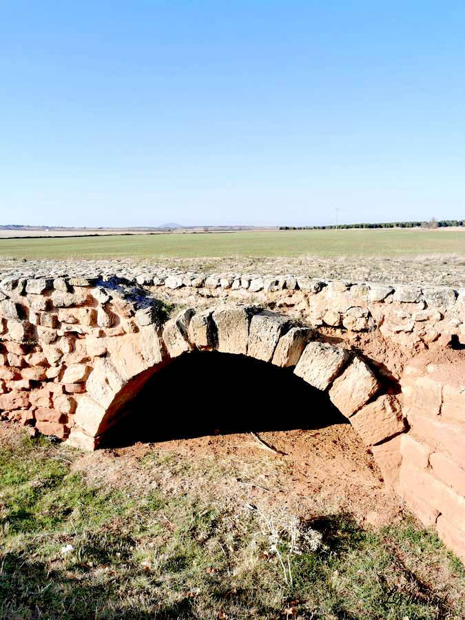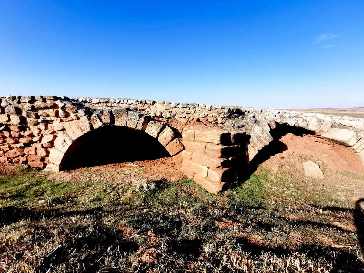 Está construido con arenisca roja local y tiene 100 metros de largo por 5 de ancho, con 6 ojos, correspondientes, al menos, a tres grandes fases constructivas. Se trata de un encabalgamiento de puentes por medio de un viaducto, siendo el puente más antiguo probablemente de factura romana y la mayor parte del resto de finales del siglo XVIII, bajo el reinado de Carlos III.