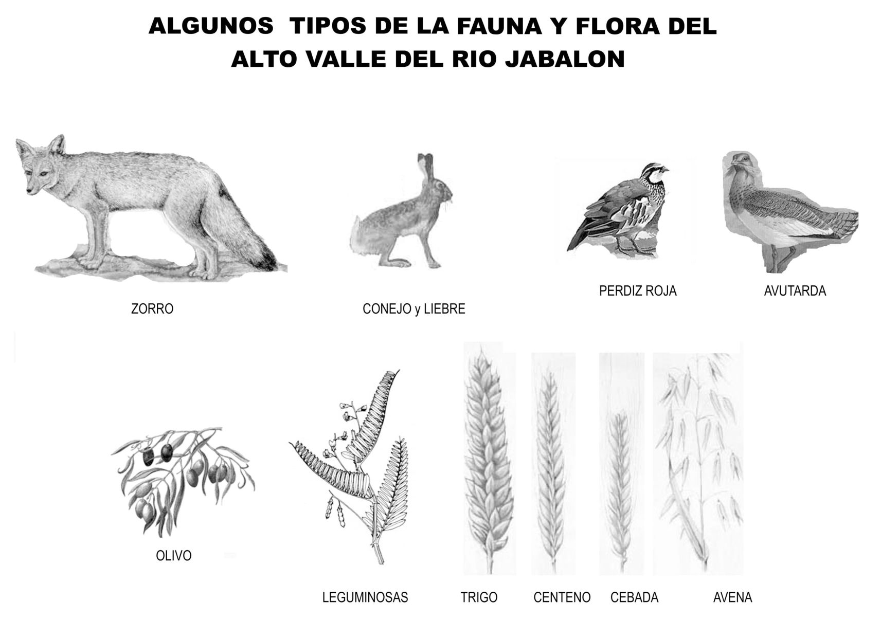 La fauna está representada por especies tan conocidas como el conejo, liebre y zorros. También aves como la perdiz, palomas y tórtolas.