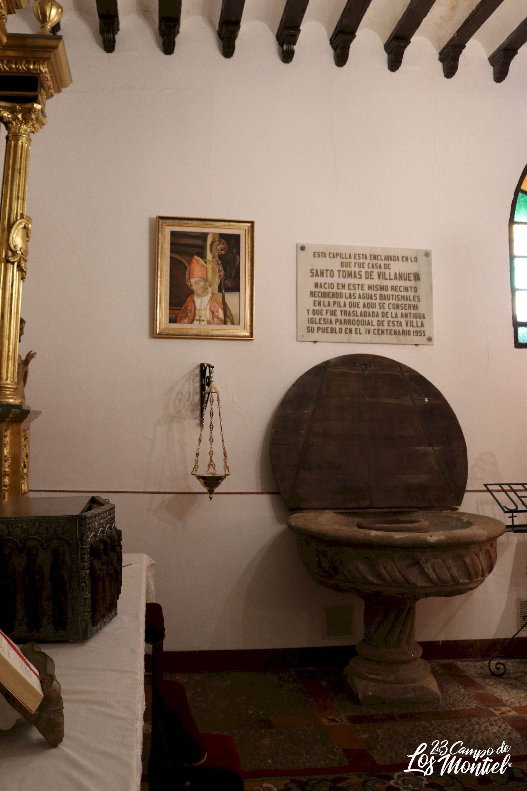 Fue bautizado en la antigua iglesia-castillo de Santa Catalina de Alejandría, y la pila bautismal, que aún se conserva, fue trasladada a una de las habitaciones del Convento de los Agustinos, y en este mismo edificio se encuentra también el Ayuntamiento, el museo municipal y la Iglesia.